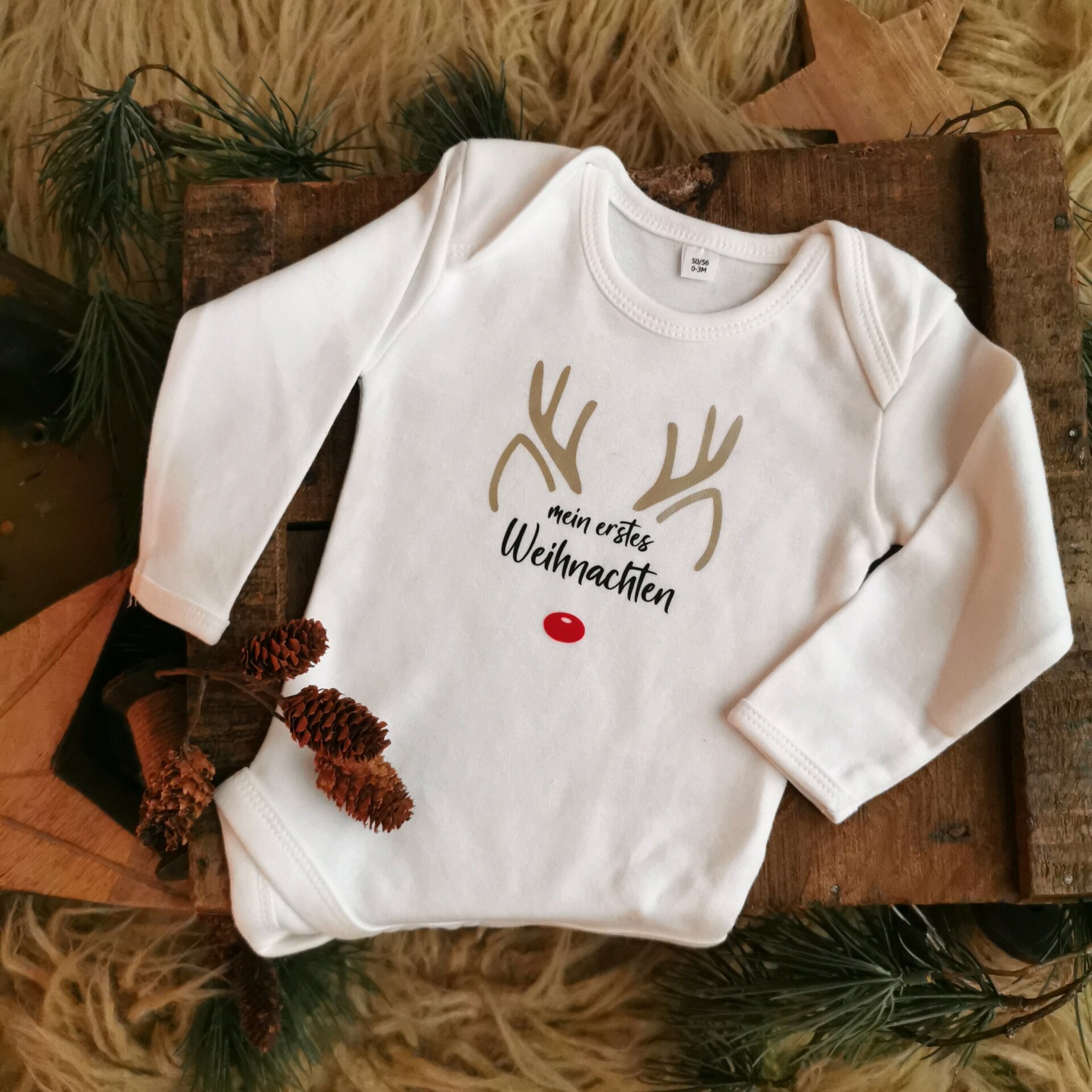• Babybody mit Rentier-Motiv – ideal für das erste Weihnachten