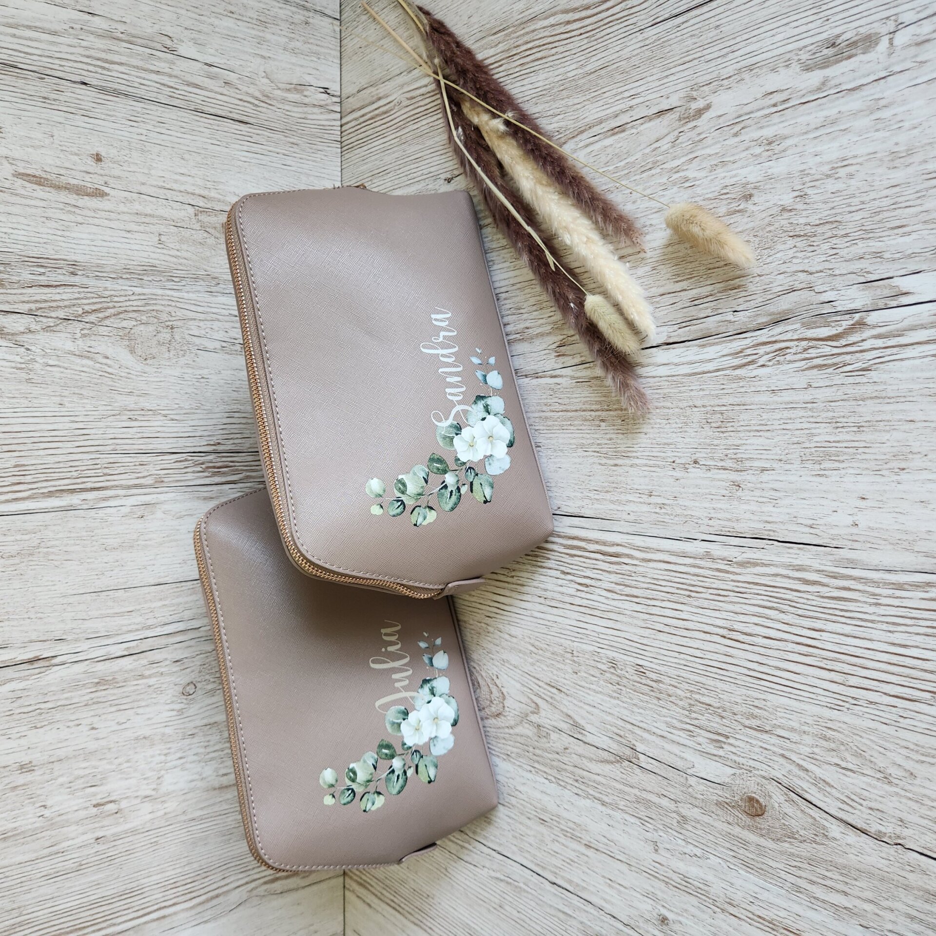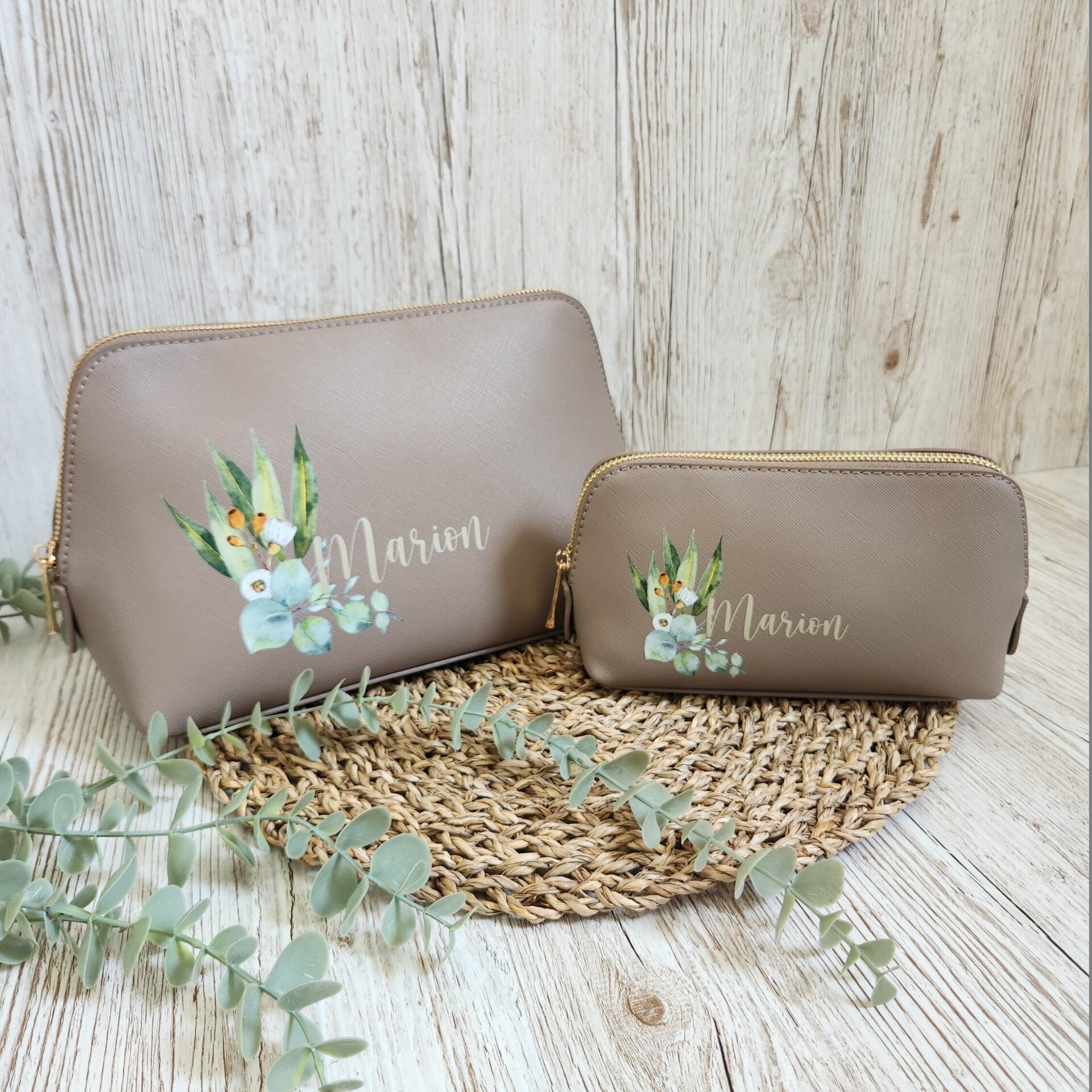 Die große Kosmetiktasche bietet ausreichend Platz für Pflegeprodukte wie Cremen, Shampoo oder Zahnpasta, während die kleine Variante ideal für Make-up, Haaraccessoires oder als Reiseapotheke geeignet ist. Ob als praktisches Reise-Accessoire oder als individuelles Geschenk für Frauen – diese personalisierte Kosmetiktasche überzeugt mit Qualität, Design und Funktion.