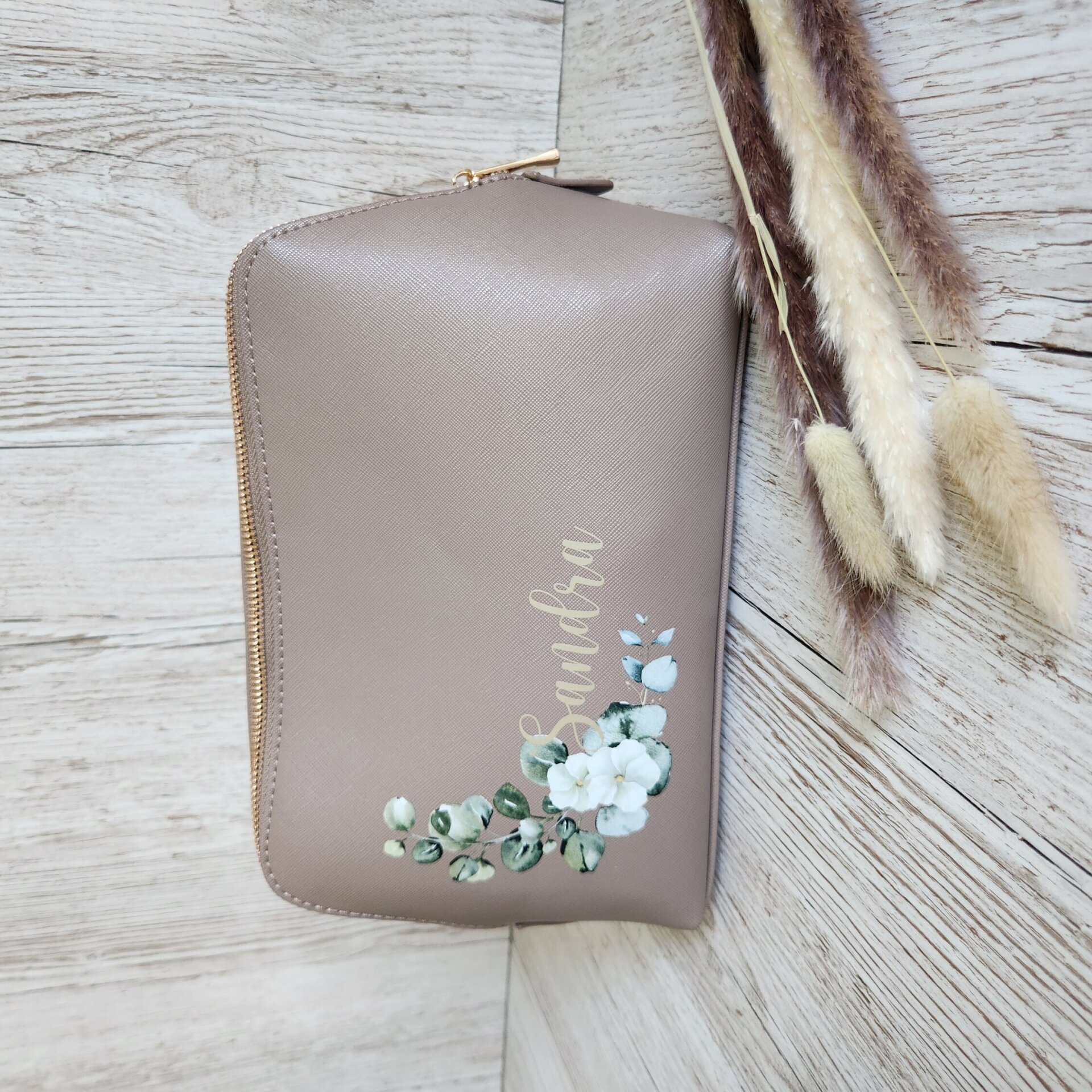 Jede Tasche wird mit einem von drei liebevoll gestalteten Blumenmotiven veredelt und anschließend mit deinem gewünschten Namen oder Spitznamen personalisiert. Die Textfarbe kannst du individuell wählen – so entsteht eine einzigartige Kombination, die genau zu dir oder der beschenkten Person passt.